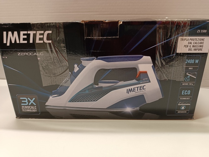 Ecost prekė po grąžinimo, Imetec ZeroCalc Z3 3500 garų lygintuvas su Anticalcare technologija, 2400 W nerūdijančio plieno plokštele su keliomis skylutėmis, garų pliūpsniu 150 g, Calc-Clean funkcija