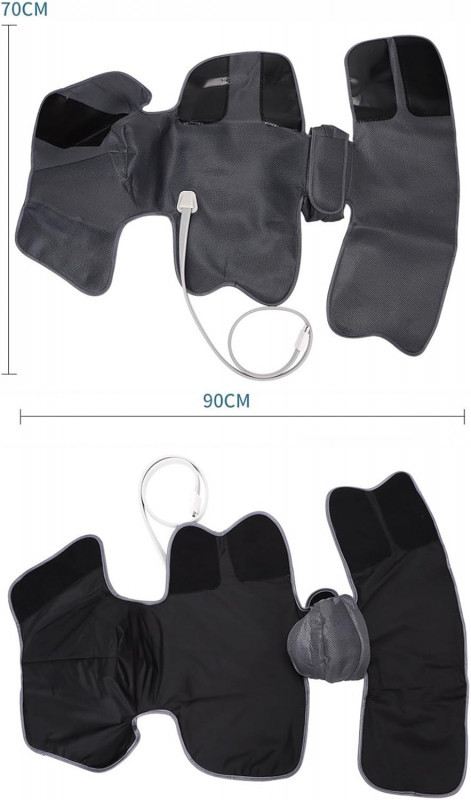 Komplektacija: masažuoklio apvyniojimai (dvi kojoms), oro žarna, maitinimo adapteris, valdymo pultelis