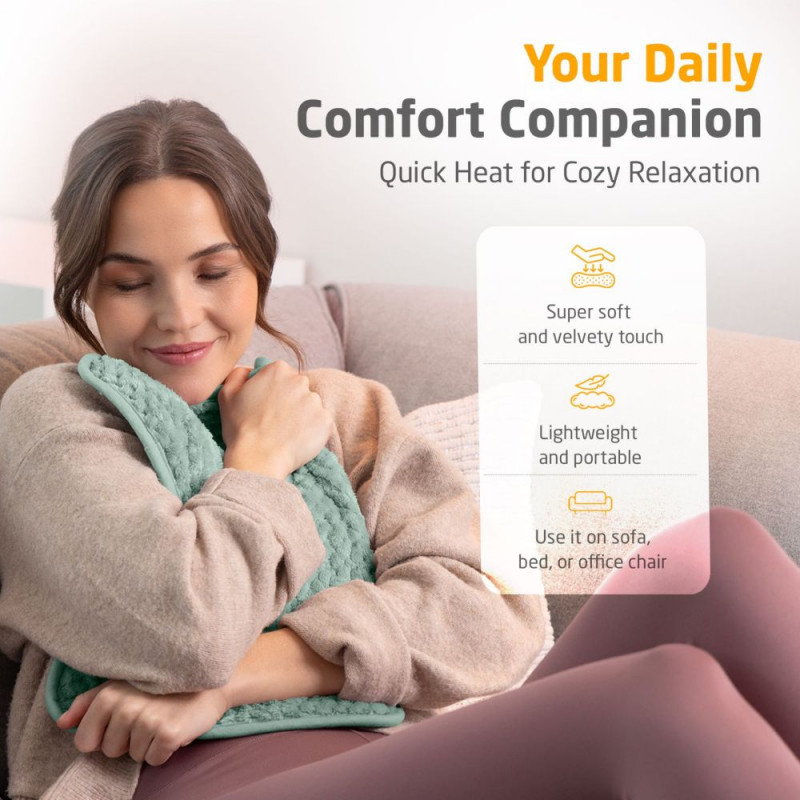 Medisana HP 517 Heating Pad, Savage Green – komfortiška elektrinė šildymo pagalvė, skirta raumenų atsipalaidavimui, skausmo mažinimui ir komfortui namuose. Reguliuojama temperatūra leidžia pasirinkti tinkamiausią šilumos lygį. Minkšta ir maloni žalios spalvos medžiaga (Savage Green) suteikia patogumą naudojant ir natūralų, ramų interjero akcentą. Ergonomiškas dizainas leidžia šildyti įvairias kūno vietas: nugarą, pečius, pilvą ar kojas.