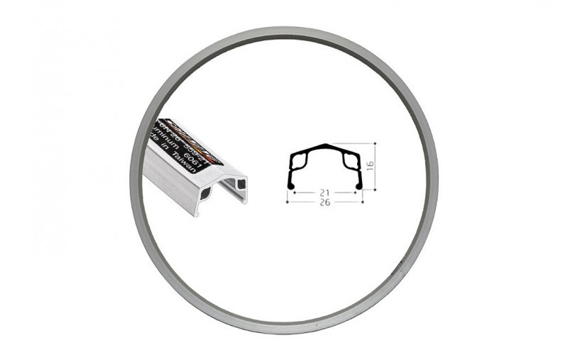 559 x 21, 9 x 100 mm su veržlėmis, be QR, Chosen stebulė, 36H, V-Brake, aliuminis viengubas ratlankis, sidabrinis