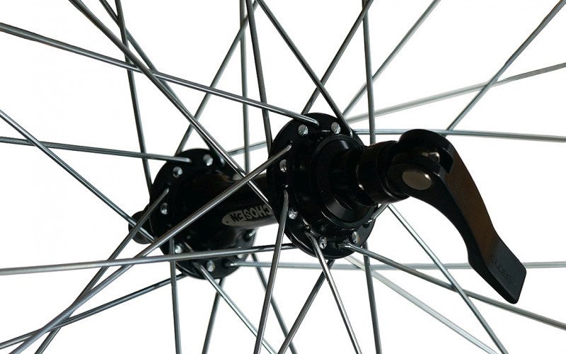584 x 18, 9 x 100 mm QR, Chosen A1066BA stebulė, 2 uždari guoliai, 32H, V-brake, dvigubas ratlankis, juodas