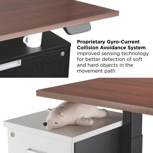 Šį stalą galima lengvai reguliuoti naudojant valdymo skydelį arba išmaniąją programėlę, todėl naudotojai gali greitai pereiti iš sėdimos padėties į stovimą be vargo.