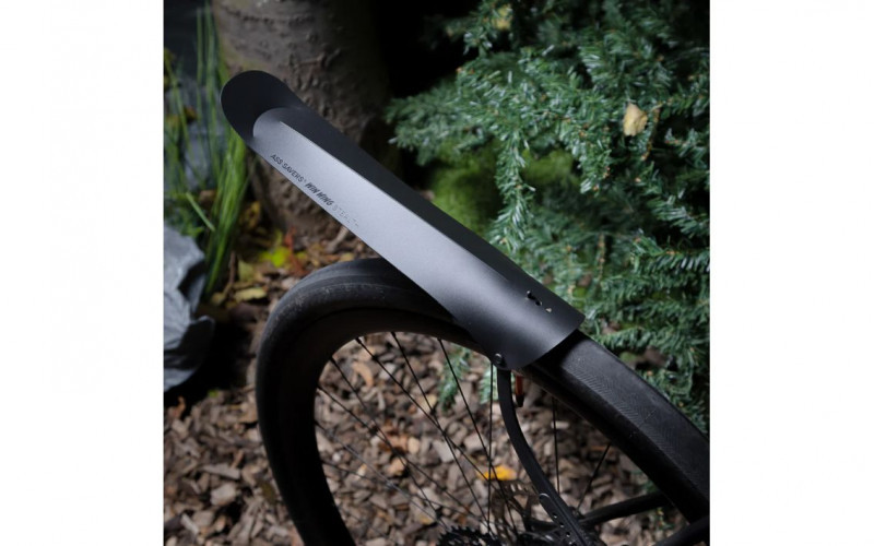 375 x 85 mm, tvirtinamas ant rėmo, tinka padangoms iki 35 mm pločio, 64 g, storis 0.9 mm, medžiaga: skydelis- PP, laikikliai - PA, dirželis - TPU