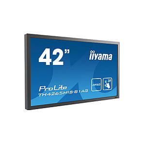 "iiyama ProLite TH4265MIS-B1AG. Display diagonal: 106.7 cm (42""), Display resolution: 1920 x 1080 pixels, HD type: Full HD, Display technology: LED, Response time: 6.5 ms, Native aspect ratio: 16:9, Viewing angle, horizontal: 178°, Viewing angle, vertical: 178°. Built-in speaker(s). VESA mounting. Product colour: Black"\n"42” Full HD professional 20pt touchscreen featuring daisy chain support