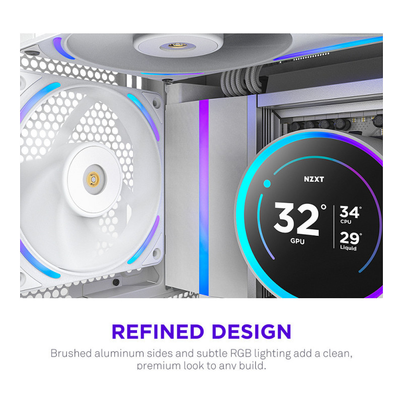 - Digital Control: Fine-tune fan speeds and RGB lighting effects through NZXT CAM* or motherboard software. *Requires NZXT Control Hub or NZXT motherboard required, sold separately.
