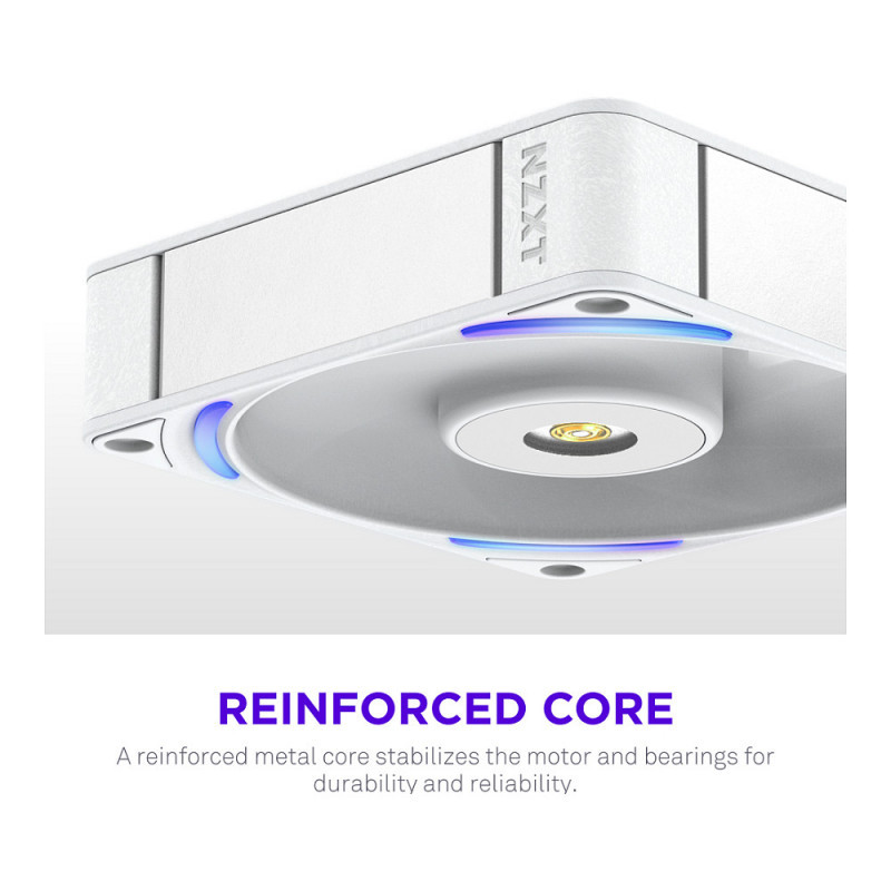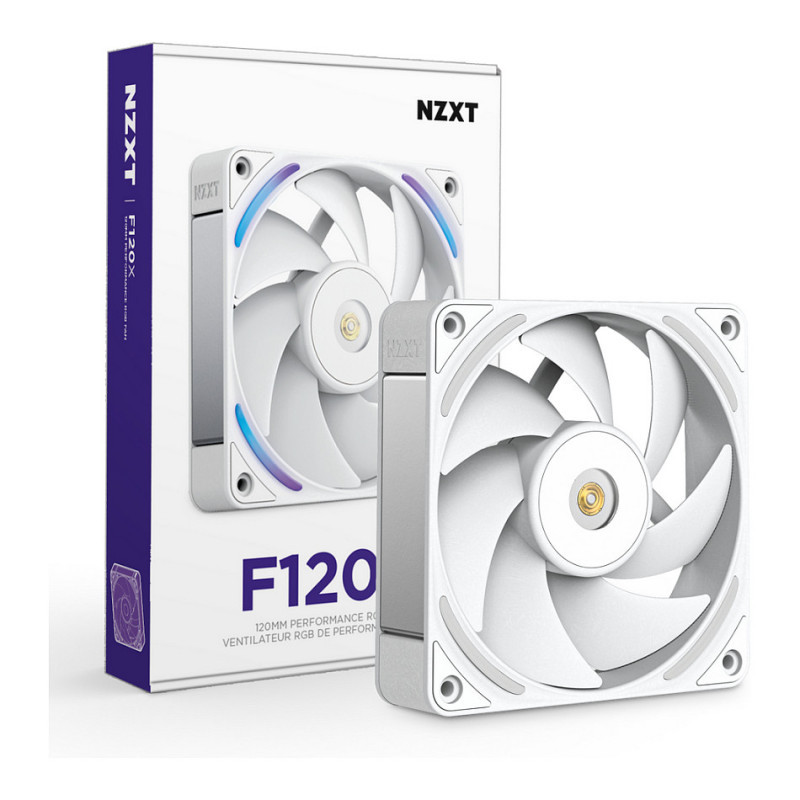 "NZXT F120X. Type: Fan, Fan diameter: 12 cm. Width: 120 mm, Depth: 30 mm, Height: 120 mm. Product colour: White"\n"The NZXT Performance Fans deliver powerful, quiet cooling with LCP construction, optimized blades, and a hybrid bearing system for superior airflow and durability. A reinforced core, advanced motor, and subtle RGB lighting combine performance and style for any gaming PC.
