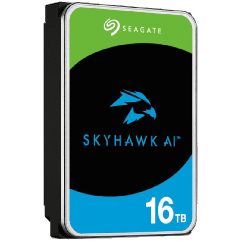 "Seagate SkyHawk AI ST16000VE005. HDD capacity: 16 TB, HDD speed: 7200 RPM, Storage drive buffer size: 512 MB, HDD size: 3.5"", Interface: Serial ATA III"\n"The Seagate SkyHawk™ AI hard drive—with up to 24TB of capacity—is purpose-built for AI video analytics and surveillance systems, supporting up to 64 HD cameras and 32 additional AI streams. It ensures zero dropped frames through ImagePerfect™ AI technology, delivering smooth video recording and playback. Engineered for high reliability, the SkyHawk AI hard drive offers enterprise-class workload rates of 550TB per year and 2.5 million hours mean time between failures (MTBF), making it the ideal solution for demanding surveillance systems and AI-driven environments requiring continuous, high-quality data capture."