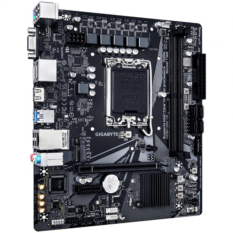 "GIGABYTE H610M S2H V2 Motherboard - Supports Intel Core 14th CPUs, 4+1+1 Hybrid Phases Digital VRM, up to 5600MHz DDR5, 1xPCIe 3.0 M.2, GbE LAN, USB 3.2 Gen 1. Processor manufacturer: Intel, Processor socket: LGA 1700, Compatible processor series: Intel® Celeron®, Intel® Core™ i3, Intel® Core™ i5, Intel® Core™ i7, Intel® Core™ i9,.... Supported memory types: DDR5-SDRAM, Maximum internal memory: 96 GB, Memory slots type: DIMM. Supported storage drive interfaces: M.2, SATA, Supported storage drive types: HDD & SSD. Graphics card family: Intel, Graphics card: HD Graphics, Maximum resolution: 4096 x 2304 pixels. Ethernet interface type: Gigabit Ethernet"\n"Elevate your computing experience with GIGABYTE's renowned motherboard series: AORUS, AERO, and GIGABYTE. Featuring innovative designs and advanced features, these boards offer exceptional performance and reliability. Whether you're a gamer, content creator, or professional, our series cater to your needs, ensuring uncompromising quality and cutting-edge"