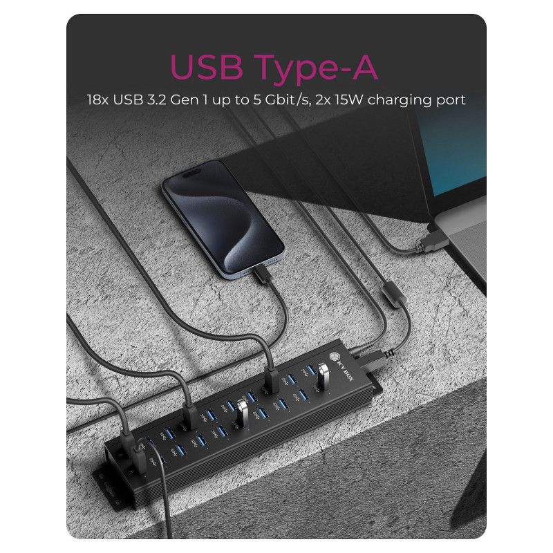 18+2 Port USB IcyBox 18x USB-A Daten Port