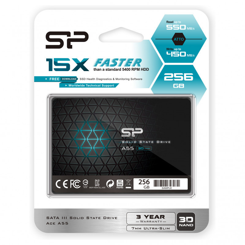 "Silicon Power Ace A55. SSD capacity: 256 GB, SSD form factor: 2.5"", Data transfer rate: 6 Gbit/s, Component for: Laptop"\n"Affordable Upgrade for Everyone