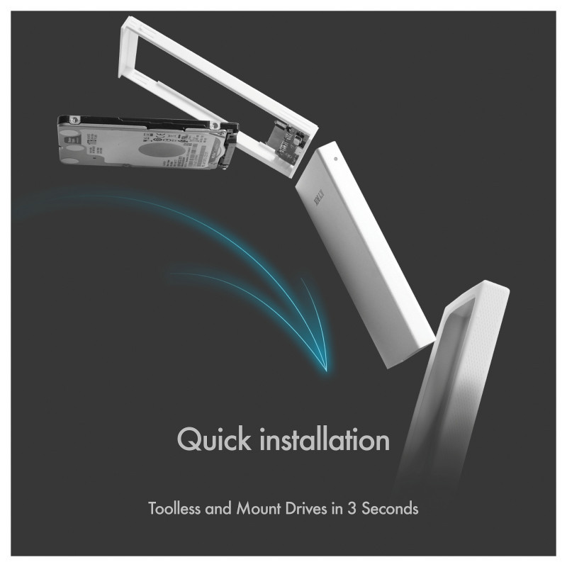 HDDs/SSDs with a height of 7 - 9.5 mm can be logded in this aluminium enclosure, and even with its small dimensions still protects the HDD again heavy damage."