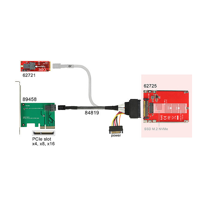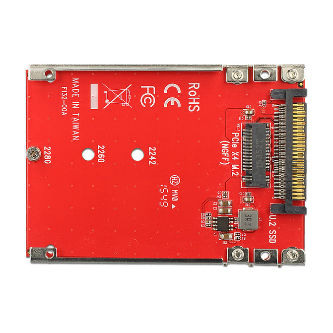 "DeLOCK 62725. Host interface: PCIe, Output interface: M.2. Power consumption (typical): 16.5 W. Windows operating systems supported: Windows 10 Education, Windows 10 Education x64, Windows 10 Enterprise, Windows 10 Enterprise x64,.... Width: 70 mm, Depth: 100 mm, Height: 7 mm. Package type: Box"\n"This Delock converter enables the connection of a M.2 SSD in 2280, 2260 and 2242 format. The converter can be installed into your system internally through the U.2 68 pin interface."