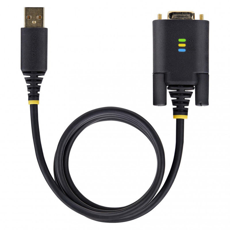 "StarTech.com 6.6ft (2m) USB to Serial Adapter Cable, COM Retention, Interchangeable Screws/Nuts, USB-A to DB9 RS232, FTDI IC, ESD Protection, Windows/macOS/Linux. Product colour: Black, Cable length: 2 m, Connector 1: USB Type-A. Quantity per pack: 1 pc(s), Package width: 220 mm, Package depth: 1 mm. Master (outer) case width: 600 mm, Master (outer) case length: 485 mm, Master (outer) case height: 345 mm"\n"Add an RS232 serial port to a laptop or desktop, using an available USB-A port