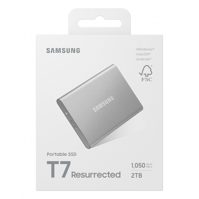 Samsung Portable T7 2TB – kompaktiškas ir spartus išorinis SSD diskas, skirtas greitam duomenų perdavimui, atsarginėms kopijoms ir didelės apimties projektų saugojimui. Diskas palaiko USB-C 3.1 (10Gb/s) jungtį, užtikrinančią plačią suderinamumą su Mac ir PC įrenginiais.