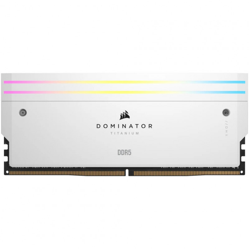 "Corsair Dominator Titanium . Component for: PC, Internal memory: 32 GB, Memory layout (modules x size): 2 x 16 GB, Internal memory type: DDR5, Memory clock speed: 7000 MHz, Memory form factor: 288-pin DIMM, CAS latency: 40, Product colour: White"\n"CORSAIR DOMINATOR TITANIUM RGB DDR5 Memory combines clean, refined styling with superior die-cast aluminum construction and advanced lighting design for a premium memory experience. Optimized for Intel® systems.