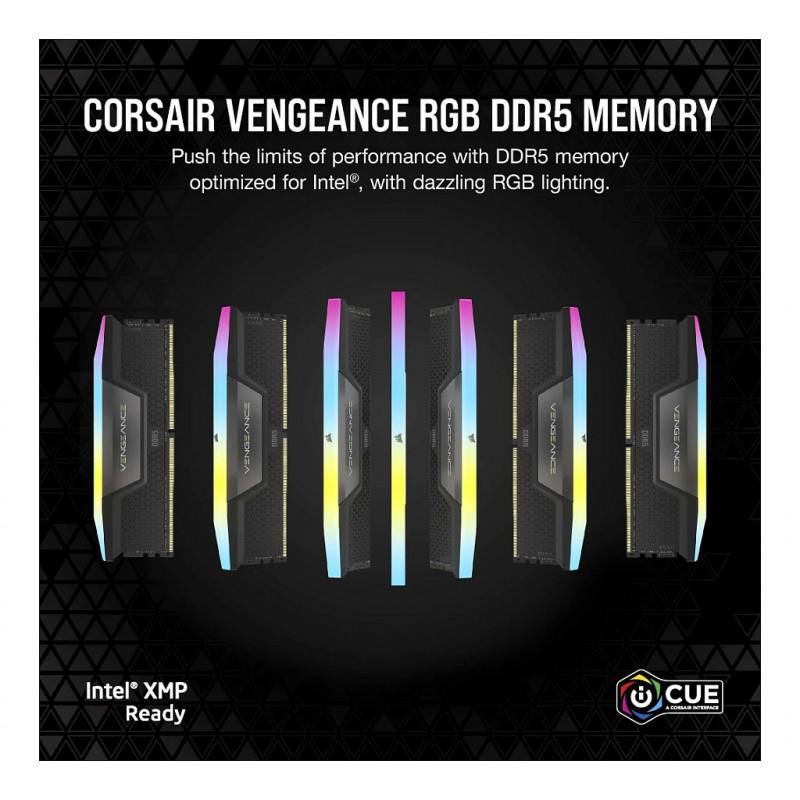 "Corsair Vengeance RGB CMH96GX5M2B7000C40. Component for: PC, Internal memory: 96 GB, Memory layout (modules x size): 2 x 48 GB, Internal memory type: DDR5, Memory clock speed: 4800 MHz, Memory form factor: 288-pin DIMM, CAS latency: 40"\n