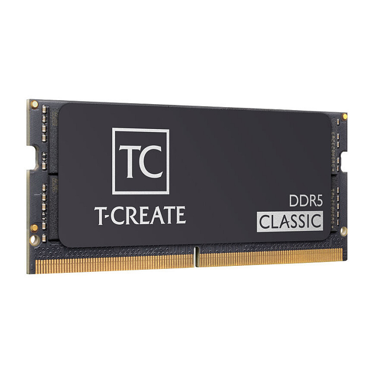 "Team Group T-CREATE CLASSIC CTCCD532G5600HC46A-S01. Component for: Laptop, Internal memory: 32 GB, Memory layout (modules x size): 1 x 32 GB, Internal memory type: DDR5, Memory clock speed: 5600 MHz, Memory form factor: 262-pin SO-DIMM, CAS latency: 46"\n"Unleash creativity with yet another legendary classic