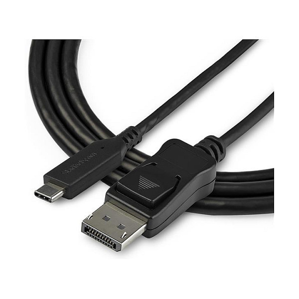 "StarTech.com 3.3ft/1m USB C to DisplayPort 1.4 Cable - 8K/5K/4K USB Type-C to DP 1.4 Alt Mode Video Adapter Converter - HBR3/HDR/DSC - 8K 60Hz DP Monitor Cable - USB-C/Thunderbolt 3. Cable length: 1 m, Connector 1: DisplayPort, Connector 2: USB Type-C. Compliance certificates: RoHS, Certification: CE, FCC, REACH. Weight: 38 g, Width: 200 mm, Depth: 1000 mm. Package width: 200 mm, Package depth: 220 mm, Package weight: 48 g. Quantity per pack: 1 pc(s)"\n"USB-C™ Video Adapter Cable | Thunderbolt™ 3 Compatible | HBR3