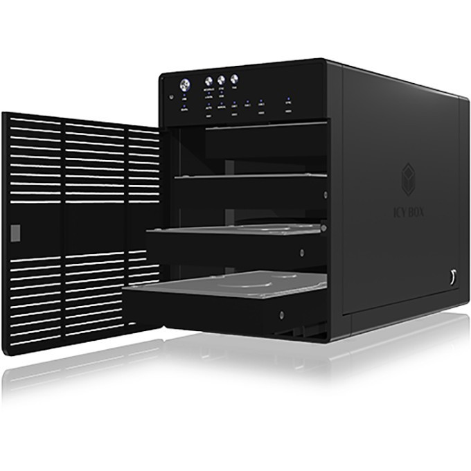 In case two HDDs are not enough: In this wonderful JBOD (=Just a bunch of disks) enclosure, four 3.5"" HDDs can be mounted. Without using any screws, the HDD can be mounted and replaced. Even while in operation.