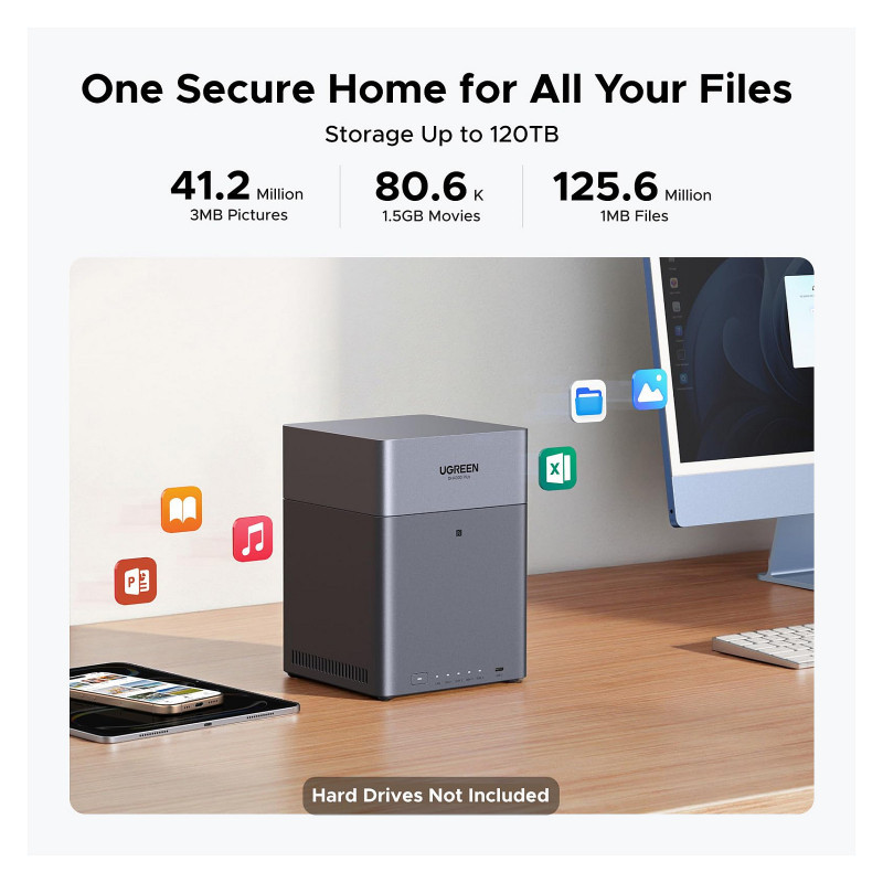 120TB Massive Capacity Embraces Your Overwhelming Data: The NAS offers enough room for your digital life, no more deleting, just preserving. You can store 41.2 million pictures, or 4 million songs, or 80.6K movies or 125.6 million files! It also does automatic backups and connects to multiple devices regardless of the OS, IOS, Android and OSX. *Storage disks not included.