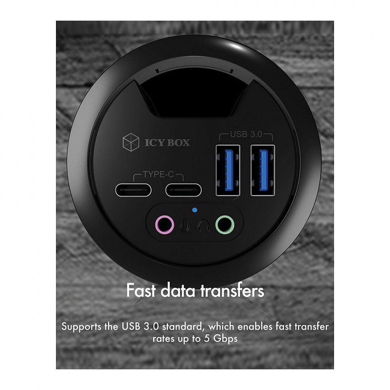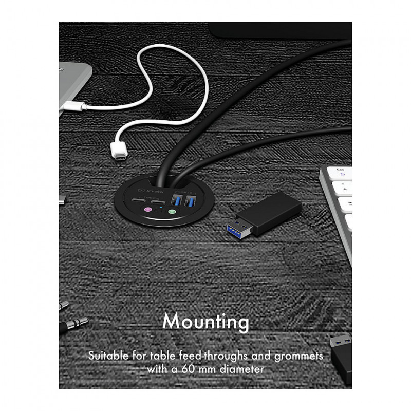 With the IB-HUB1403B you can easily connect your frequently used USB Type-C™ and USB Type-A devices as well as your headset within sight and reach on your desk.