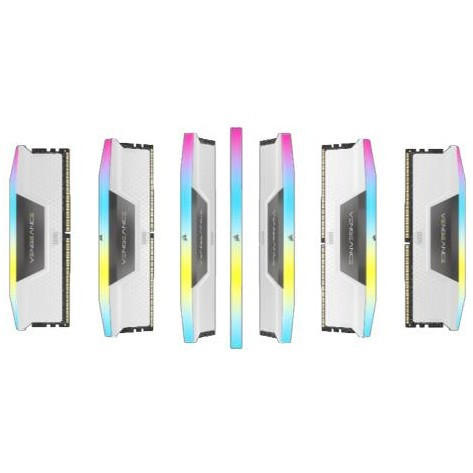 "Corsair Vengeance RGB CMH64GX5M2B5600C40W. Component for: PC, Internal memory: 64 GB, Memory layout (modules x size): 2 x 32 GB, Internal memory type: DDR5, Memory clock speed: 5600 MHz, Memory form factor: 288-pin DIMM, CAS latency: 40"\n"CORSAIR VENGEANCE RGB DDR5 memory delivers DDR5 performance, higher frequencies, and greater capacities optimized for Intel® motherboards while lighting up your PC with dynamic, individually addressable ten-zone RGB lighting. Tightly screened high- frequency memory chips enable faster processing, rendering, and buffering than ever, with onboard voltage regulation for easy, finely controlled overclocking. Take control with CORSAIR iCUE software and enable RGB lighting customization, real-time frequency monitoring, onboard voltage regulation, and Intel XMP 3.0 profile customization. A custom PCB provides superb signal quality for high performance and stability on the latest Intel DDR5 motherboards. For cutting-edge DDR5 performance with mesmerizing RGB lighting, VENGEANCE RGB DDR5 lights the way."