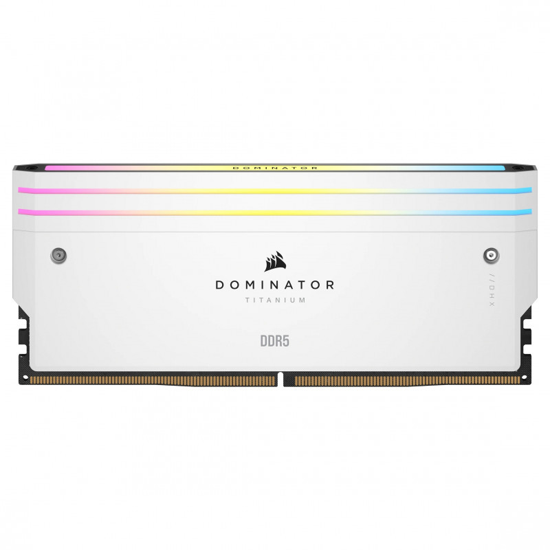 "Corsair Dominator Titanium CMP64GX5M4B6000C36W. Component for: PC, Internal memory: 64 GB, Memory layout (modules x size): 4 x 16 GB, Internal memory type: DDR5, Memory clock speed: 6000 MHz, Memory form factor: 288-pin DIMM, CAS latency: 36"\n"DOMINATOR TITANIUM