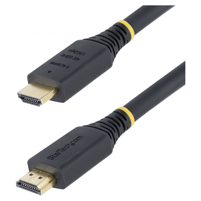 "StarTech.com 7m (22.9ft) Premium Certified High Speed HDMI Cable, 4K 60Hz/1440p 144Hz, HDR10/HDCP 2.2/ARC, 18Gbps, UHD HDMI 2.0 Cord for TV/Monitor/Display, TPE Jacket. Cable length: 7 m, Connector 1: HDMI Type A (Standard), Connector 1 gender: Male, Connector 2: HDMI Type A (Standard), Connector 2 gender: Male, Connector contacts plating: Gold, HDMI version: 2.0, Data transfer rate: 18 Gbit/s, Audio Return Channel (ARC), Product colour: Black"\n"Connect reliably between HDMI UHD devices using this Premium Certified HDMI Cable
