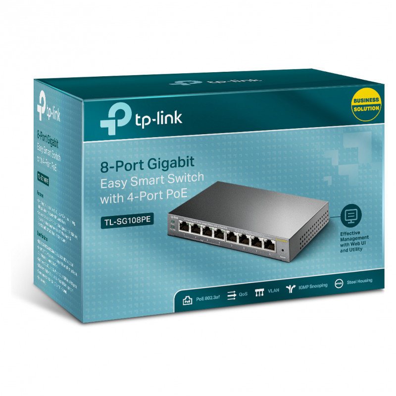 "TP-Link 8-Port Gigabit Easy Smart Switch with 4-Port PoE. Switch type: Managed, Switch layer: L2. Basic switching RJ-45 Ethernet ports type: Gigabit Ethernet (10/100/1000), Basic switching RJ-45 Ethernet ports quantity: 8. MAC address table: 4000 entries, Switching capacity: 16 Gbit/s. Networking standards: IEEE 802.1Q, IEEE 802.1p, IEEE 802.3ab, IEEE 802.3i, IEEE 802.3u, IEEE 802.3x. Power over Ethernet (PoE)"\n"PoE Switches for Your Ultra Convenience