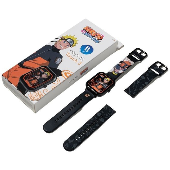 "ABYX FIT Touch 3. Display diagonal: 4.65 cm (1.83""), Display technology: TFT, Display resolution: 172 x 320 pixels, Touchscreen. Band colour: Black"\n"The Abyx Fit Touch 3 Naruto Edition is the perfect smartwatch for anyone looking to monitor their health and fitness while staying connected to the world. Equipped with a 1.83-inch Full Touch TFT color screen, this watch offers excellent image quality and a user-friendly interface. It features advanced functions such as heart rate measurement, blood pressure monitoring, and sleep analysis, allowing you to keep an eye on your essential health data 24/7. With its IP68 waterproof rating, it is suitable for all kinds of sports activities and supports 123 sport modes to track your progress in various disciplines. Additionally, the watch offers maximum connectivity with Bluetooth 5.1 and a phone call function. With an impressive 230 mAh battery capacity, the Touch 3 provides several days of battery life and up to 15 days of standby time, making it a reliable daily companion. This limited edition with exclusive Naruto design is a must-have for all fans."