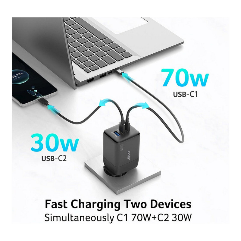 Acer GaN 100w 2 x USB-C + 1x USB-A ports. black