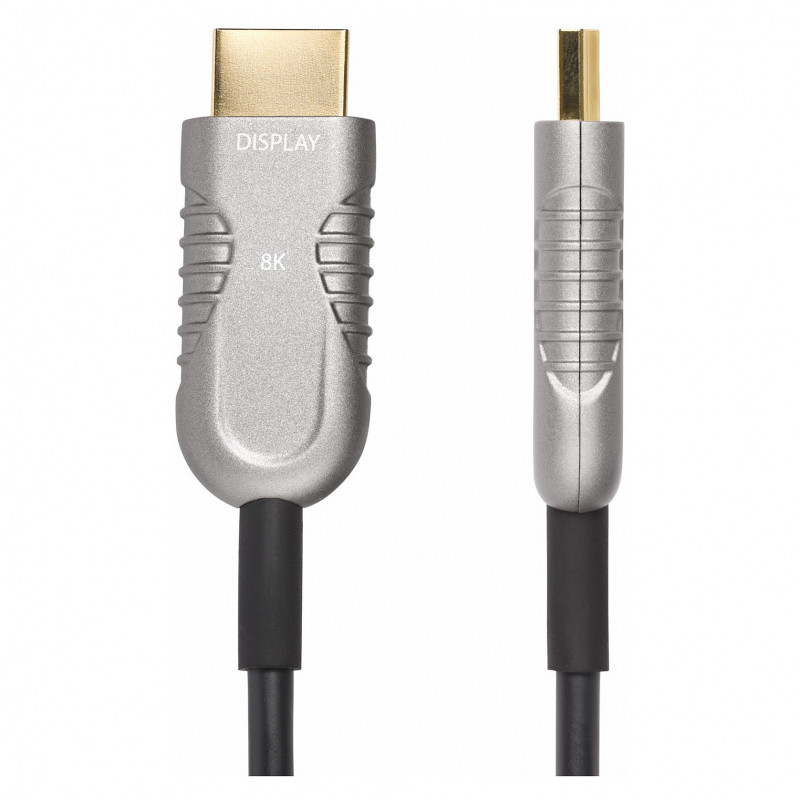 Route this Ultra High Speed HDMI 2.1 Hybrid Active Optical Cable (AOC) through office plenum spaces for long distance transmission of 8K 60Hz video and high quality audio.