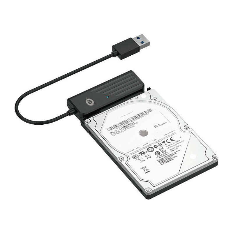 "Conceptronic ABBY USB 3.0 to SATA Adapter. Product colour: Black, Country of origin: China. Width: 32 mm, Depth: 12 mm, Height: 65 mm. Quantity per pack: 1 pc(s), Package width: 75 mm, Package depth: 20 mm. Products per master (outer) case: 50 pc(s), Master (outer) case width: 230 mm, Master (outer) case length: 180 mm. Data transfer rate: 6 Gbit/s"\n"The USB to SATA adapter easily adds an external 2.5"""" SATA solid-state drive or hard drive to your PC or laptop, offering a steady and efficient data transmission with transfer rate of up to 6Gbps.