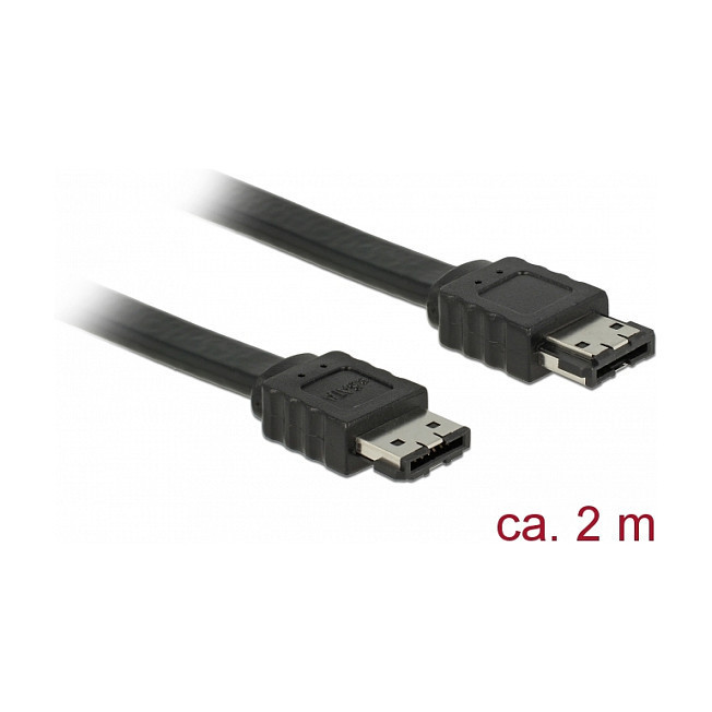 "DeLOCK 85641. Cable length: 2 m, Cable type: SATA II, Connector 1: eSATA. Package type: Polybag"\n"This eSATA cable by Delock is used to connect various SATA devices with eSATA connectors, such as external hard drives."