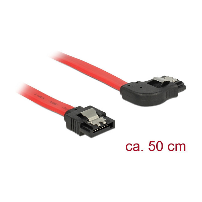 "DeLOCK 82679. Cable length: 1 m, Connector gender: Male/Male, Product colour: Red"\n"This SATA cable by Delock complies with the latest standard and provides a data transfer rate of up to 6 Gb/s, which is twice as fast as its forerunner. It enables an internal connection of SATA devices, e.g. HDD, Controller card or Flash memory. Furthermore the SATA 6 Gb/s interface is downward compatible to the elder versions, at which you can only achieve the respective transfer speed. "