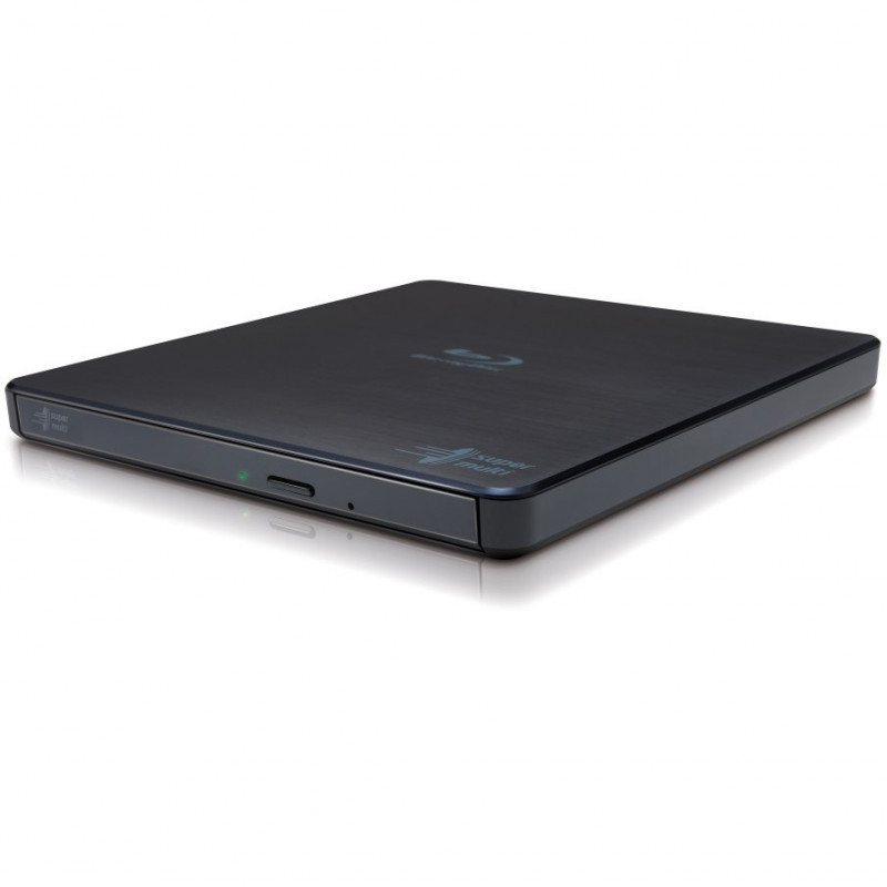 "Hitachi-LG Slim Portable Blu-ray Writer. Product colour: Black, Disc loading type: Tray. Purpose: Tablet, Optical drive type: Blu-Ray RW, Interface: USB 2.0. CD write speed: 24x, DVD+R write speed: 8x, BD-R write speed: 6x. CD read speed: 24x. Windows operating systems supported: Windows 10, Other operating systems supported: Android"\n"DISCKLINK & TrueDVD Apps