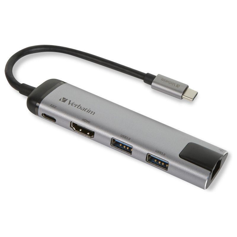 LAN adapteris ir USB šakotuvas 4-viename, su RJ-45 išėjimu ir trimis USB Type-A 3.0 jungtimis.