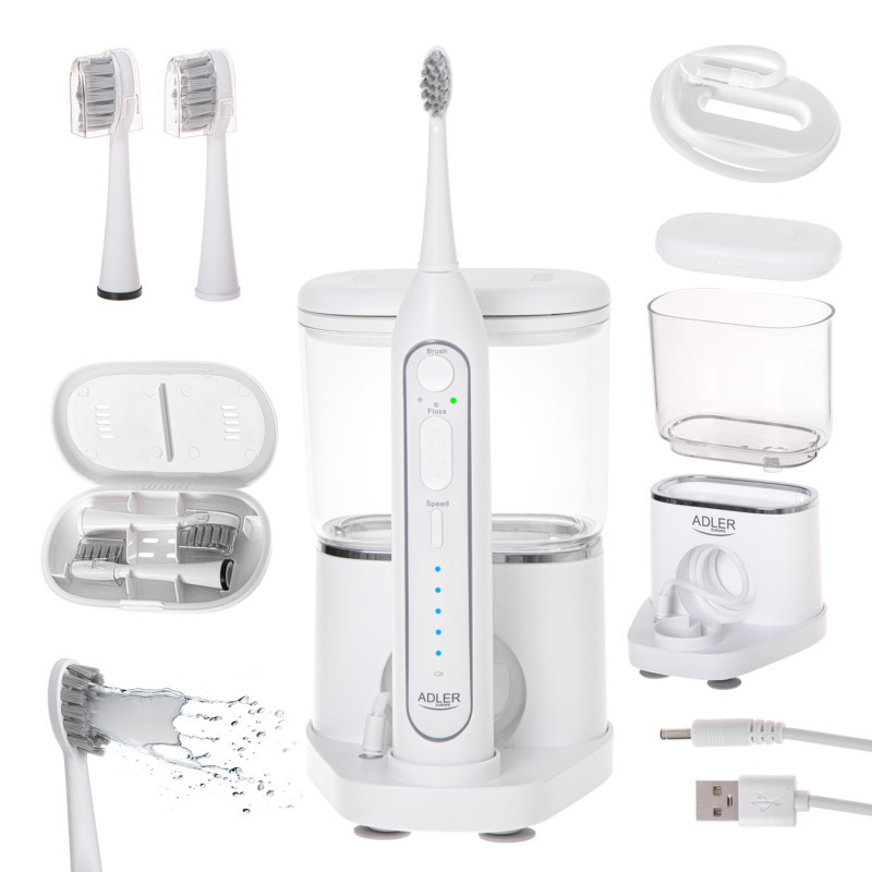 Adler | 2-in-1 Water Flossing Sonic Brush | AD 2180w | Rechargeable | For adults | Number of brush heads included 2 | Number of teeth brushing modes 1 | White