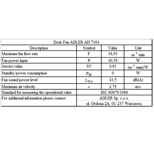 Adler | AD 7304 | Desk Fan | White | Diameter 40 cm | Number of speeds 3 | Oscillation | 45 W | No