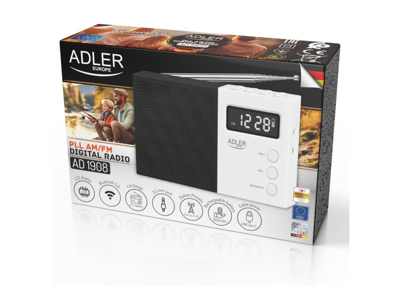 Adler | Digital Radio - PLL AM/FM | AD 1908 | Alarm function | White/Black