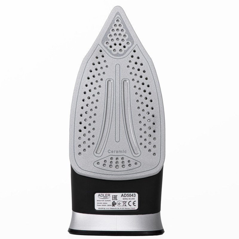 Adler Steam Iron | AD 5043 | Steam Iron | 2800 W | Water tank capacity 300 ml | Continuous steam 30 g/min | Steam boost performance 42 g/min | Black/Silver