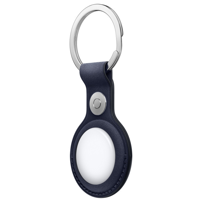 "Apple AirTag FineWoven Key Ring – Navy. Type: Ring, Product colour: Navy, Brand compatibility: Apple. Package weight: 34 g, Package depth: 83 mm, Package width: 12 mm. Quantity per pack: 1 pc(s)"\n"The FineWoven key ring is thoughtfully crafted from innovative materials. The stainless steel is as striking as it is strong, while the durable micro-twill has a suede-like feel and is made from 68 per cent post-consumer recycled content, significantly reducing carbon emissions compared to leather. And it fits snugly over your AirTag, so you never have to worry about it falling out. AirTag is sold separately."