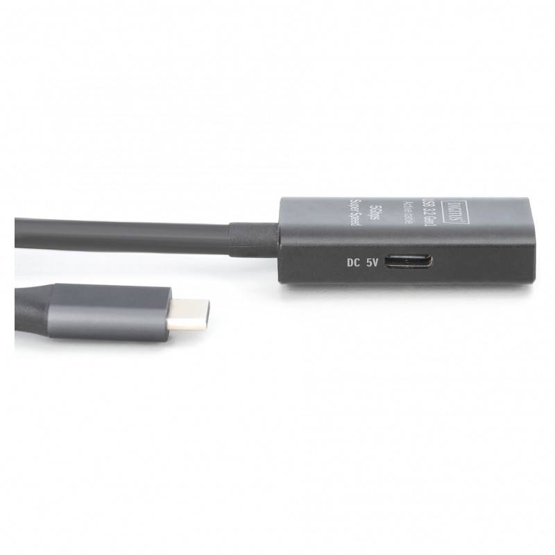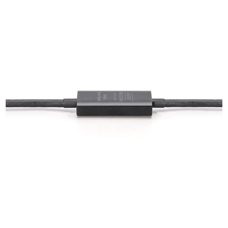 "Digitus Active USB 3.2 Gen1 5G extension cable, USB-C - USB-C, 10m. Cable length: 10 m. Connector 1: USB C, Connector 2: USB C, USB version: USB 3.2 Gen 1 (3.1 Gen 1), Maximum data transfer rate: 5 Gbit/s, Product colour: Black, Magnetically shielded"\n"The Digitus USB 3.2 Gen1 active extension extends the cable length of a USB 3.2 device by 10m and guarantees a fast data transfer rate of 5 Gbit/s over the entire length.