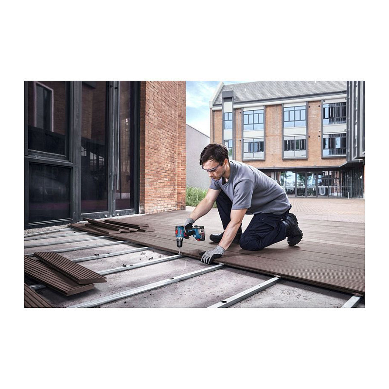 "Bosch GSR 18V-65. Product design: Pistol grip drill, Chuck type: Key, Product colour: Black, Blue. Idle speed (max): 2100 RPM, Idle speed (1st gear): 550 RPM, Idle speed (2nd gear): 2100 RPM. Power source: Battery, Battery technology: Lithium-Ion (Li-Ion), Battery voltage: 18 V. Weight: 1.06 kg, Width: 166 mm, Depth: 77 mm"\n
