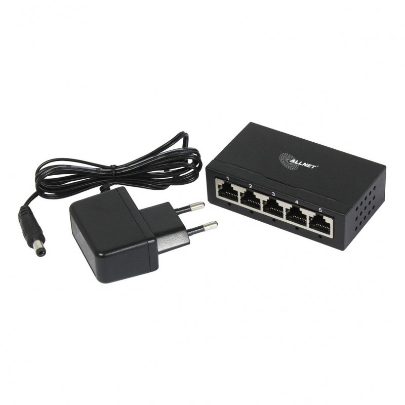 "ALLNET 215276. Switch type: Unmanaged, Switch layer: L2. Basic switching RJ-45 Ethernet ports type: Gigabit Ethernet (10/100/1000), Basic switching RJ-45 Ethernet ports quantity: 5. Switching capacity: 10 Gbit/s. Networking standards: IEEE 802.3, IEEE 802.3u. DC input voltage: 5 V. Form factor: Desktop"\n