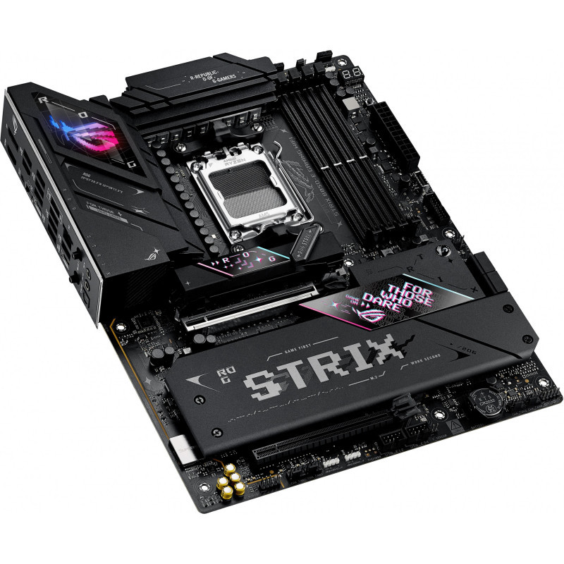 When only the fastest will do, a Strix B850 motherboard delivers. With USB 20Gbps onboard along with robust overclocking¹ capabilities, featuring faster dual-channel DDR5 memory support, AMD EXPO™ technology and PCIe® 5.0 support for both graphics and NVMe, you can play the most demanding games and deliver your biggest projects with the revolutionary performance of an AMD 800-series motherboard and AMD Ryzen™ 9000, 8000, and 7000 Series processors.