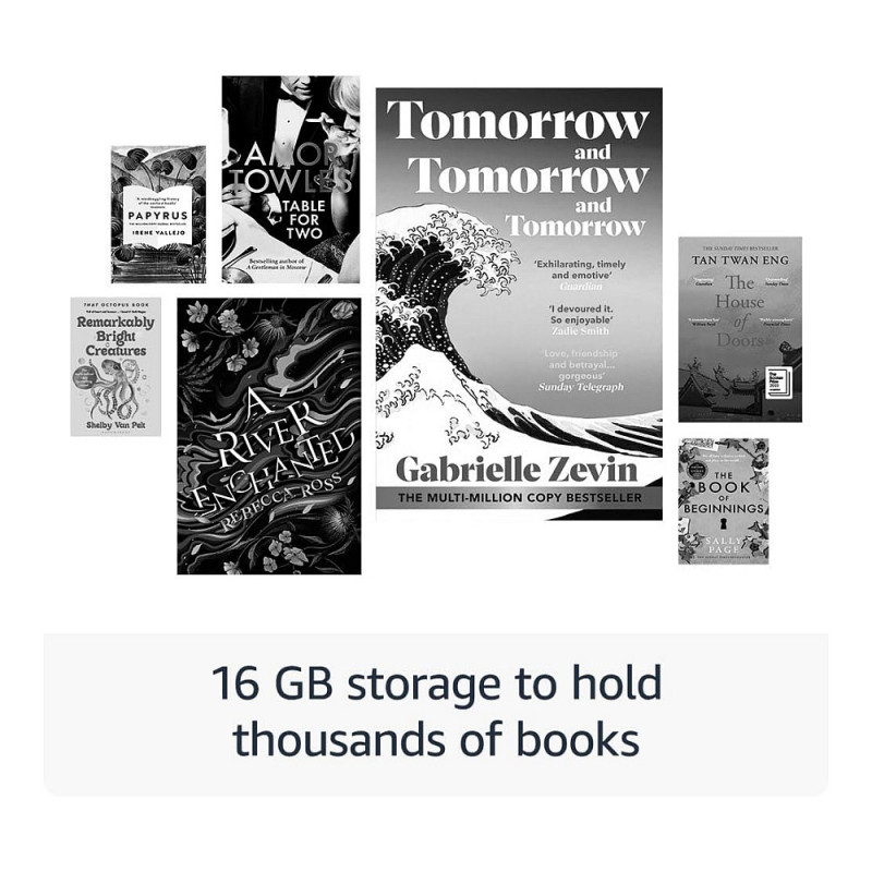 "Amazon B0DDZT2Z1L. Display diagonal: 15.2 cm (6""), Technology: E Ink Carta, Display resolution: 1072 x 1448 pixels. Document formats supported: AZW, AZW3, DOC, DOCX, EPUB, HTML, MOBI, PDF, PRC, RTF, TXT, Audio formats supported: AAX, Image formats supported: BMP, GIF, JPEG, PNG. Internal storage capacity: 16 GB. USB connector type: USB Type-C. Menu languages: English"\n"See the difference. Literally.