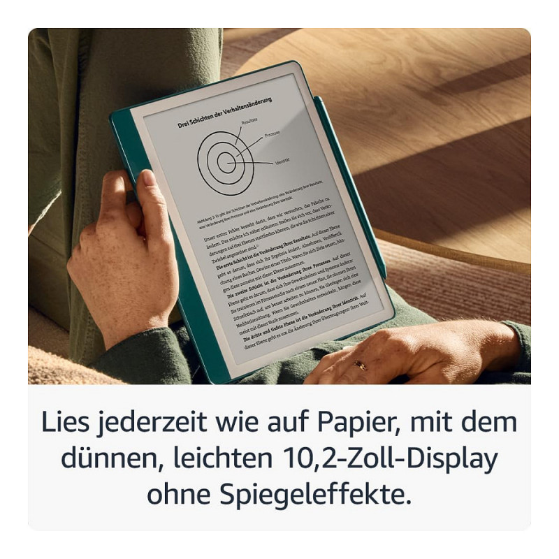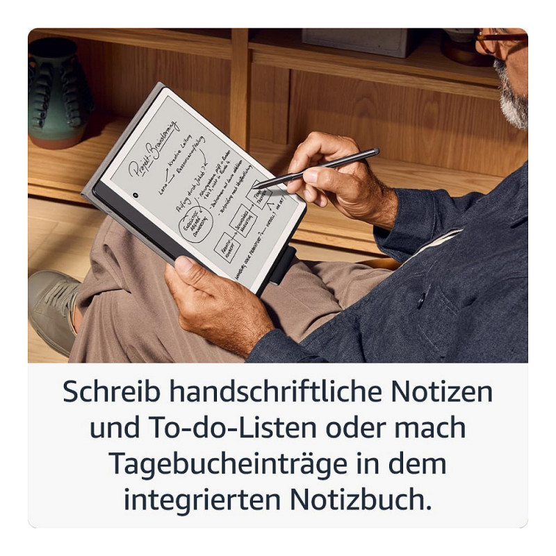 "Amazon Kindle Scribe. Display diagonal: 25.9 cm (10.2""), Technology: E Paper. Document formats supported: AZW, AZW3, DOC, DOCX, EPUB, HTML, MOBI, PDF, PRC, RTF, TXT, Audio formats supported: AAX, Image formats supported: BMP, GIF, JPEG, PNG. Internal storage capacity: 16 GB. USB connector type: USB Type-C. Product colour: Anthracite, Housing material: Aluminium"\n