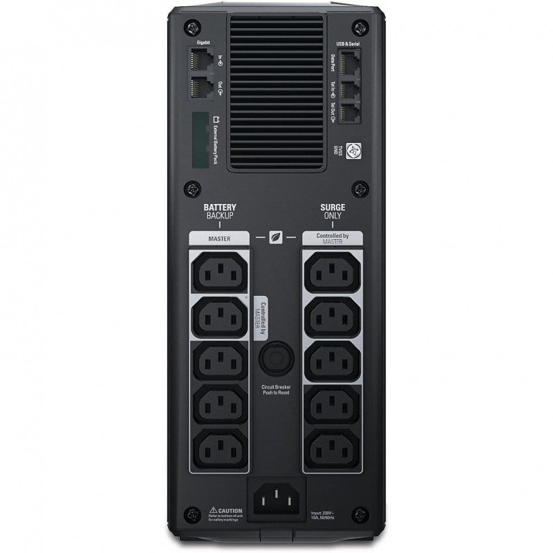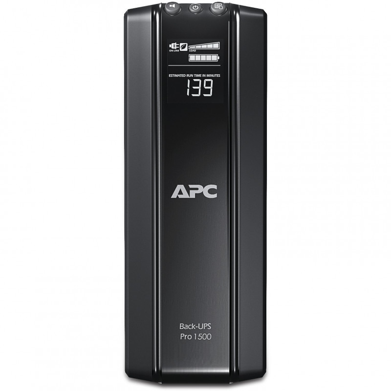 "APC Back-UPS Pro, 1500VA/865W, Tower, 230V, 10x IEC C13 outlets, AVR, LCD, User Replaceable Battery. UPS topology: Line-Interactive, Output power capacity: 1.5 kVA, Output power: 865 W. AC outlet types: C13 coupler, Power plug: C14 coupler, AC outlets quantity: 10 AC outlet(s). Battery technology: Sealed Lead Acid (VRLA), Battery capacity: 187 VAh, Typical backup time at full load: 3.7 min. Product colour: Black, Display type: LCD. Compliance certificates: RoHS, Certification: A-tick, C-tick, CE, GOST, GS Mark, Telepermit, TUV, REACH, PEP, EOLI, NEMKO-GS"\n"This APC Back-UPS Pro offers premium power protection for high performance computer systems, routers/modems, external storage devices, game consoles and other electronics in your home or business. The 1500VA tower UPS has 10 total outlets, 5 of which are battery back up and surge protection, and 5 that are surge protection only. It has a surge energy rating of 441 Joules. Its dimensions are 30.1 x 11.2 x 38 cm and 12.7 kg. The Back-UPS Pro family offers guaranteed power protection for high-performance computer systems, routers, external storage devices, game consoles, and other home and business electronics. This UPS has a 2-year warranty and CE product certification. It is compatible with a dedicated user-replaceable battery, and the APC replacement battery cartridge helps restore UPS performance to the original specifications."