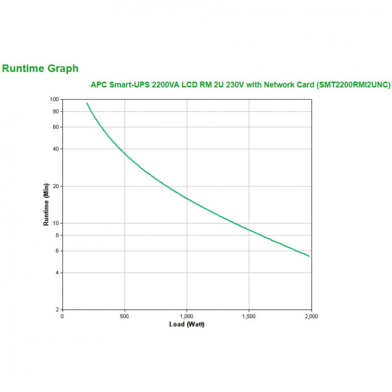 "APC Smart-UPS, Line Interactive, 2200VA, Rackmount 2U, 230V, 8x IEC C13+2x IEC C19 outlets, Network Card, AVR, LCD. UPS topology: Line-Interactive, Output power capacity: 2.2 kVA, Output power: 1980 W. AC outlet types: C13 coupler, C19 coupler, AC outlets quantity: 9 AC outlet(s). Battery technology: Sealed Lead Acid (VRLA), Battery capacity: 509 Ah, Battery recharge time: 5 h. Form factor: Rackmount, Product colour: Black, Rack capacity: 2U. Compliance certificates: RoHS, Certification: CE, EAC, EN/IEC 62040-1, EN/IEC 62040-2, GS Mark, IRAM, RCM, VDE, WEEE"\n"Stay always online and prevent data loss